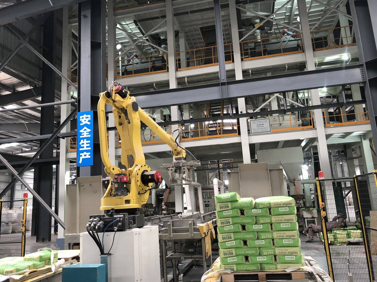 码垛机器人系统采用专利技术的坐标式机器人的安装占用空间灵活紧凑。能够在较小的占地面积范围内建造高效节能的全自动砌块成型机生产线的构想变成现实。